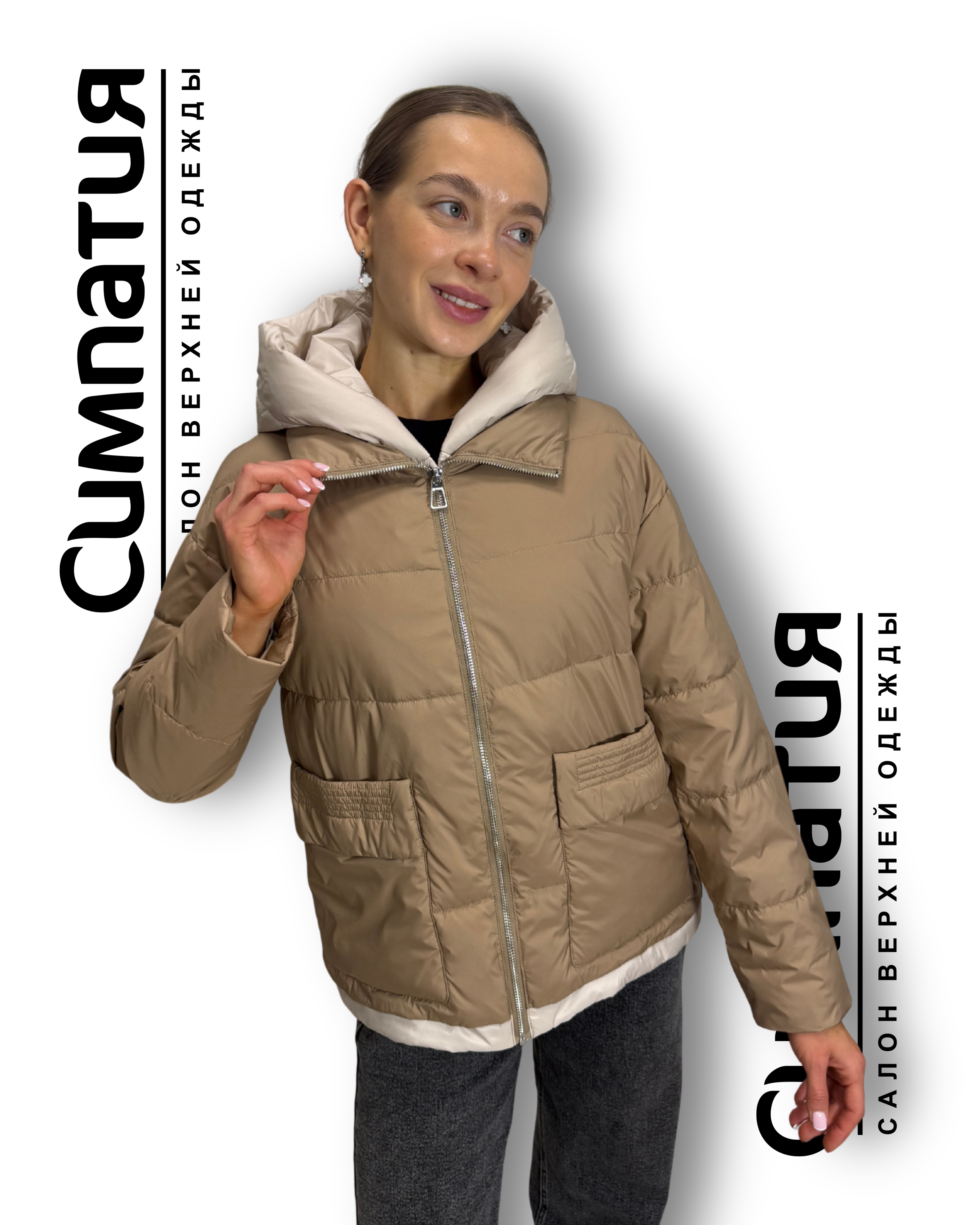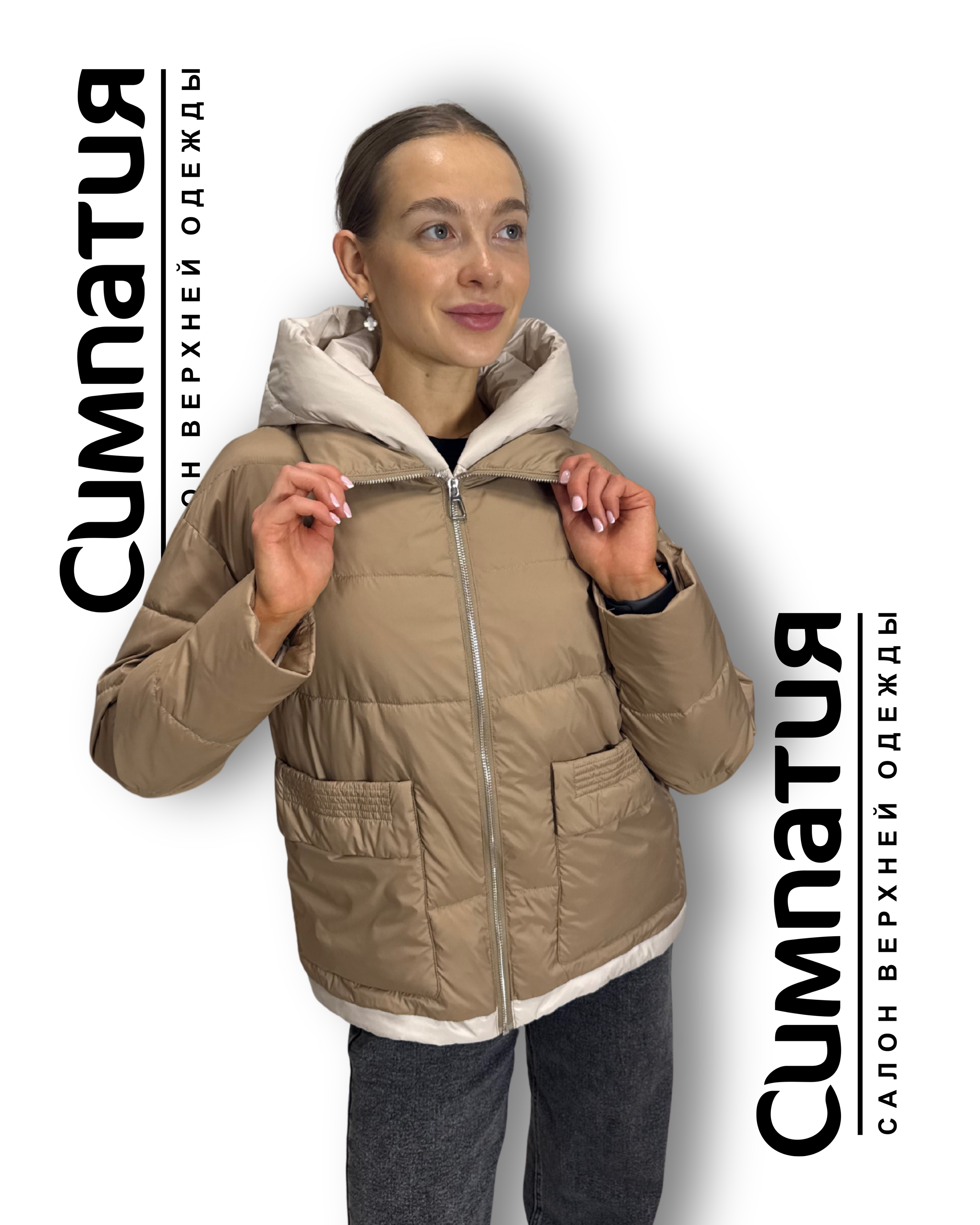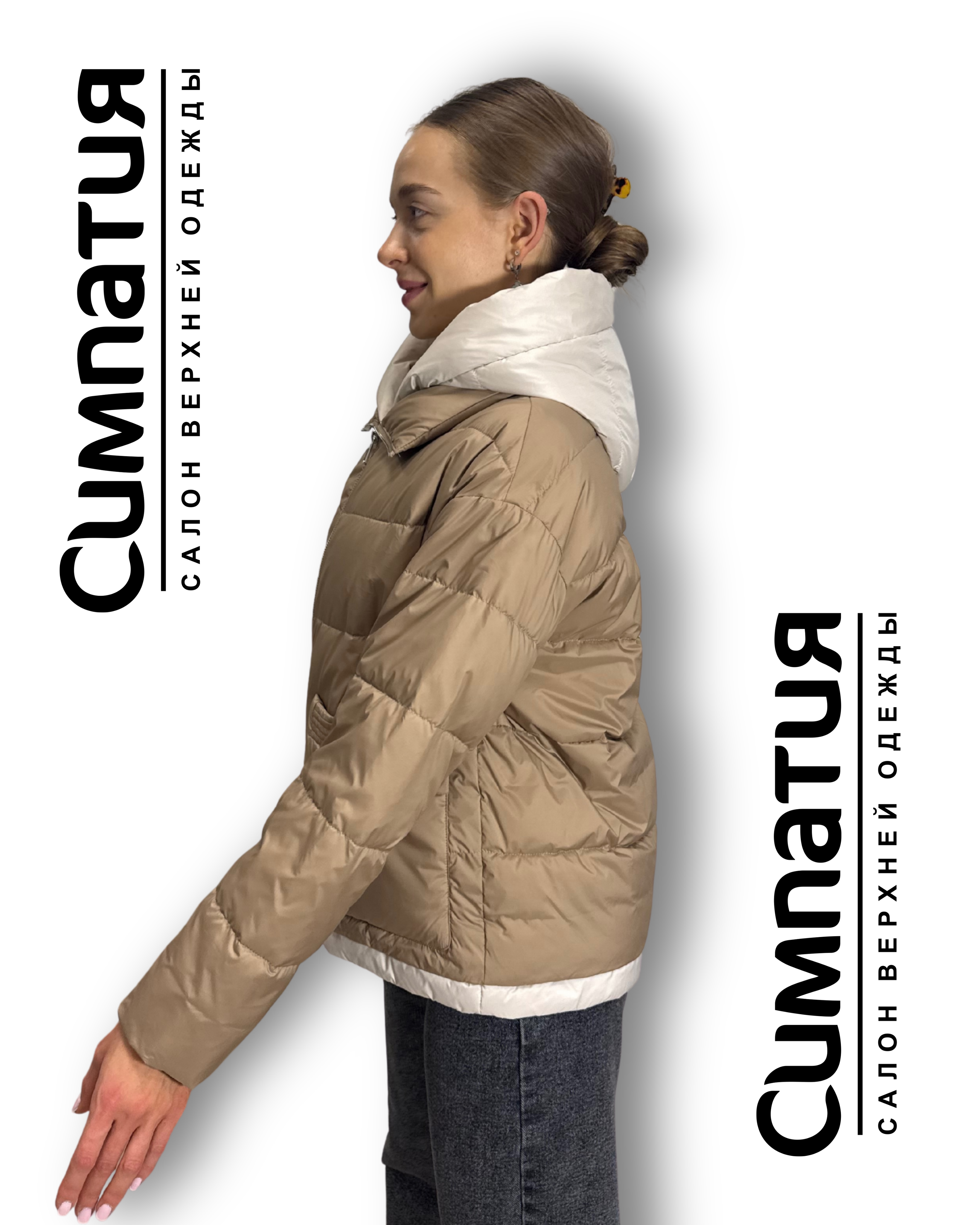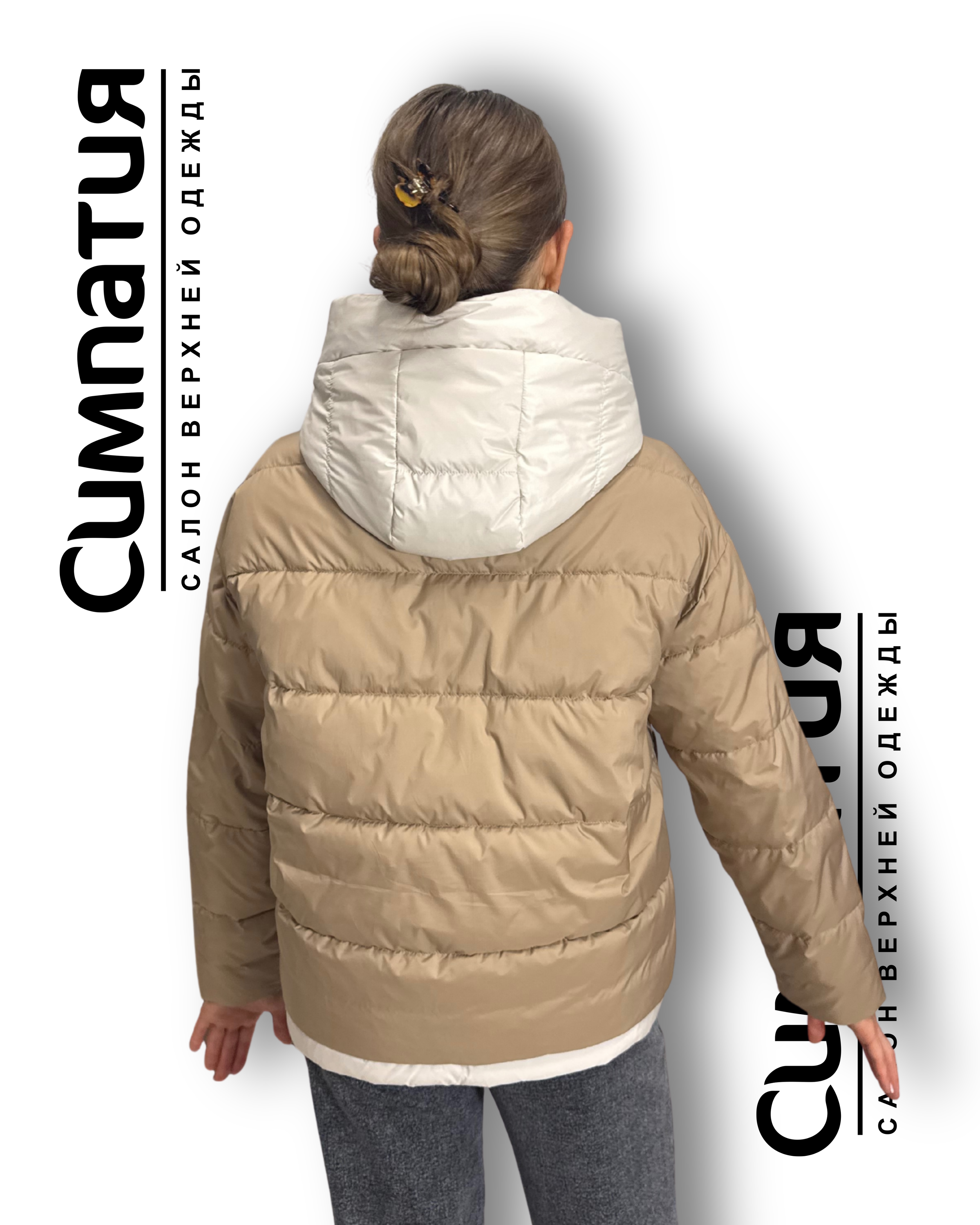 Комбинированная куртка бежевого цвета со сливочным капюшоном