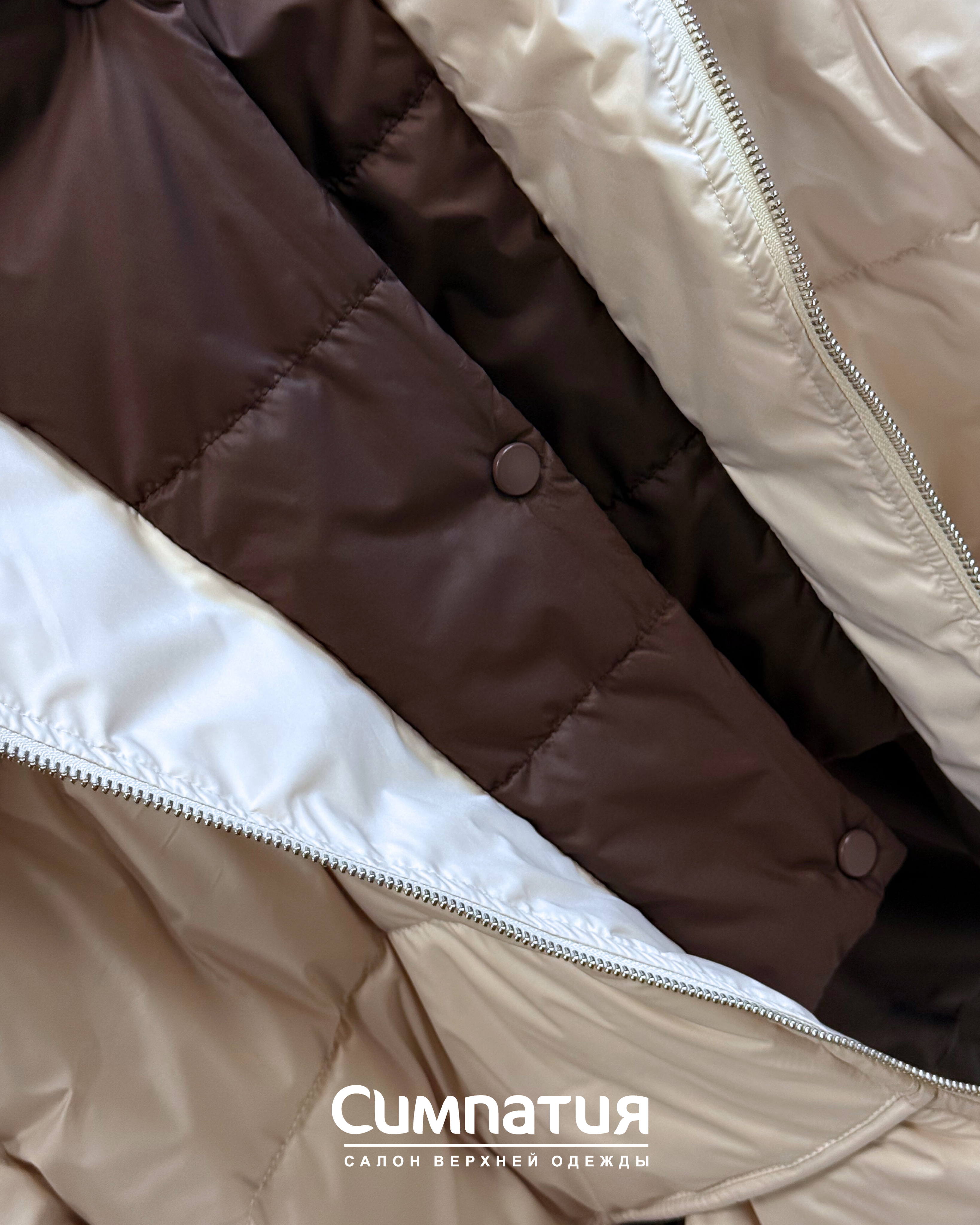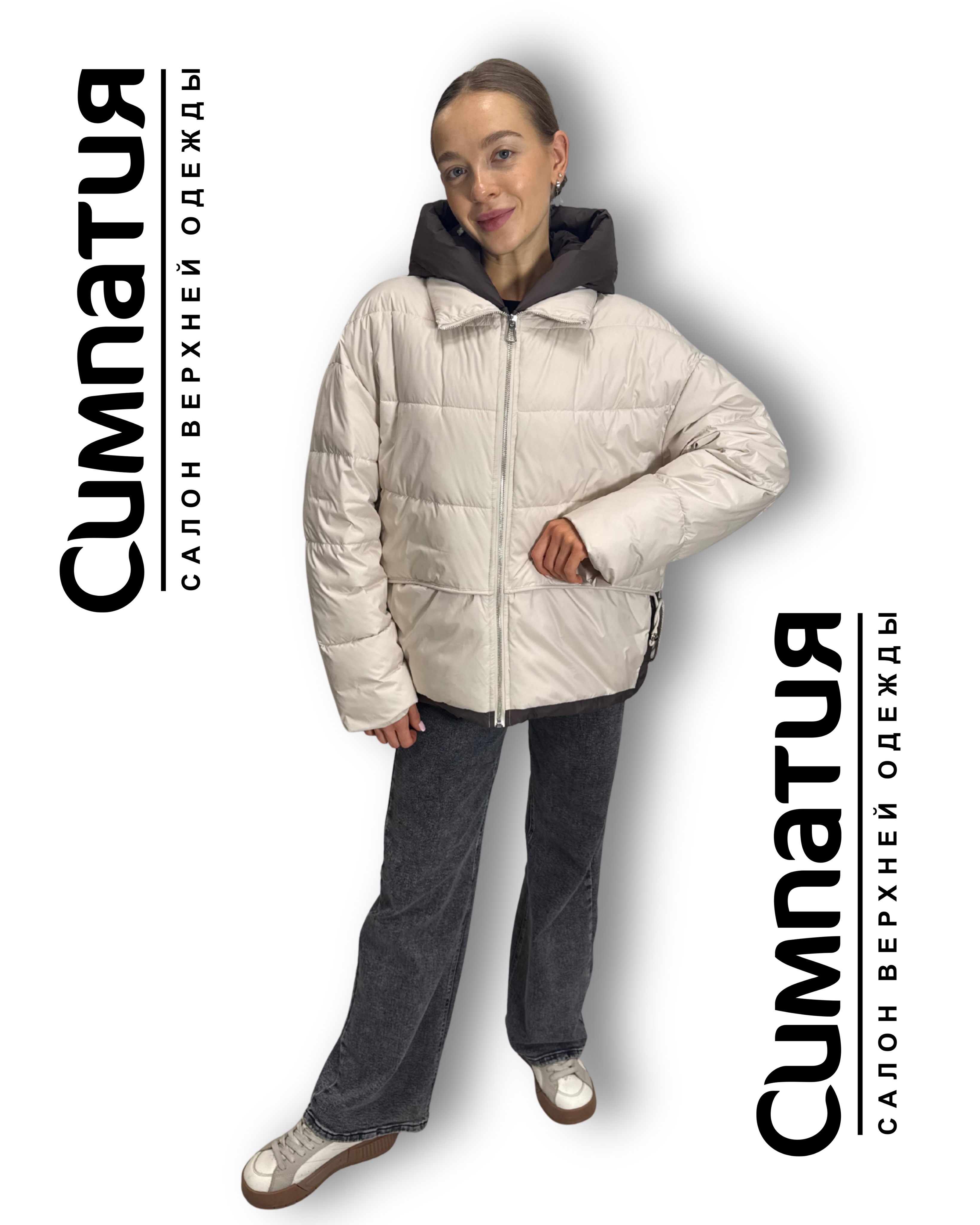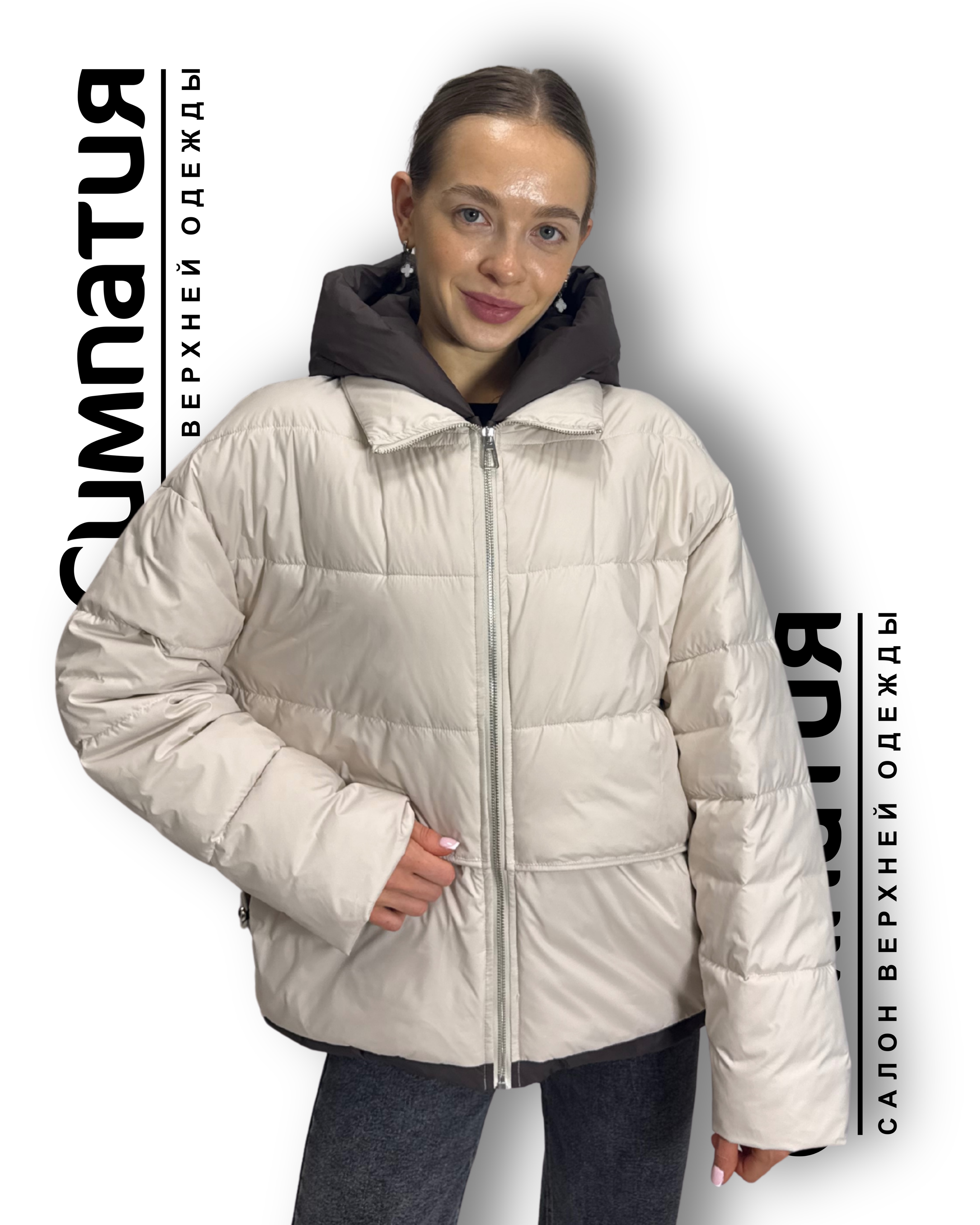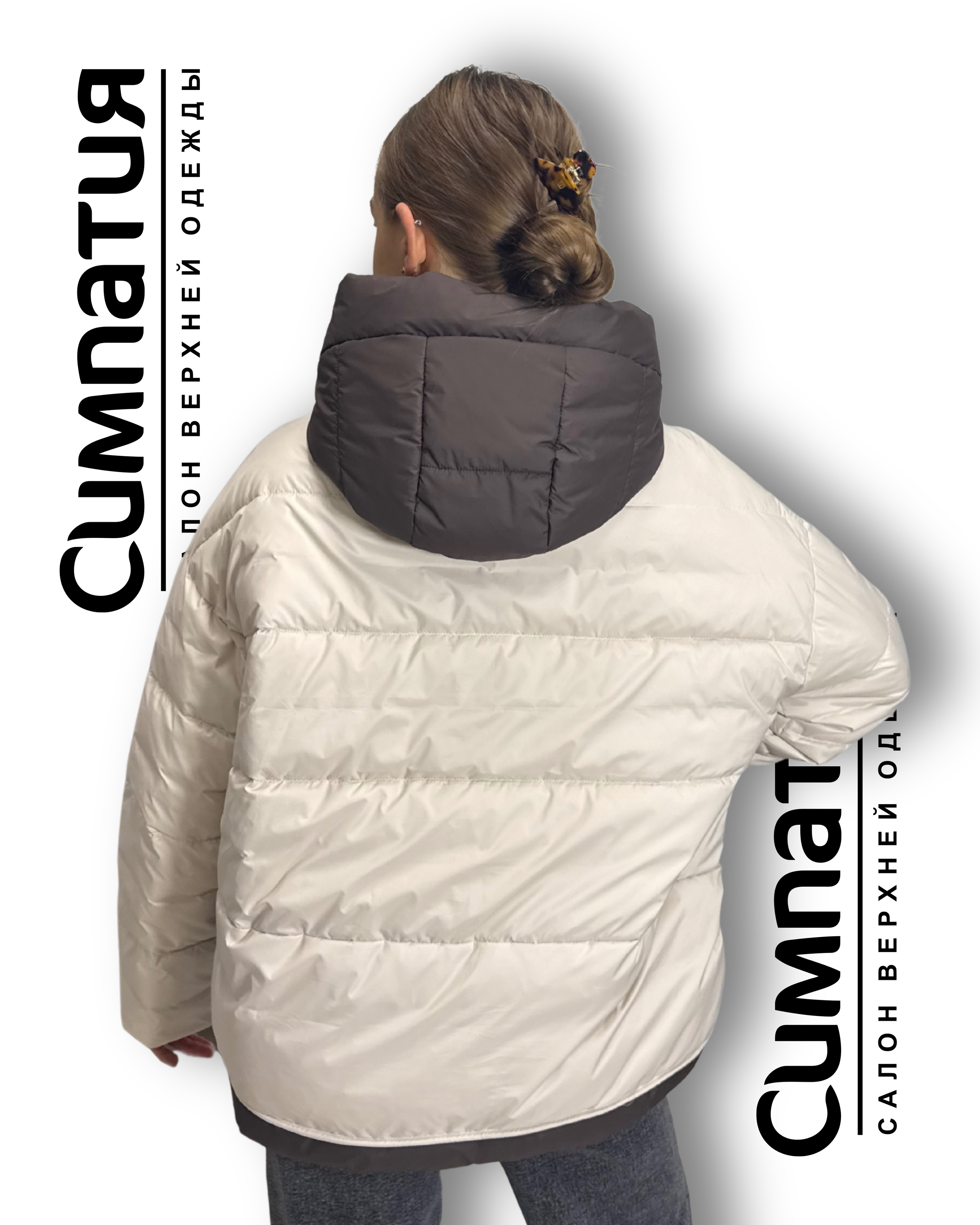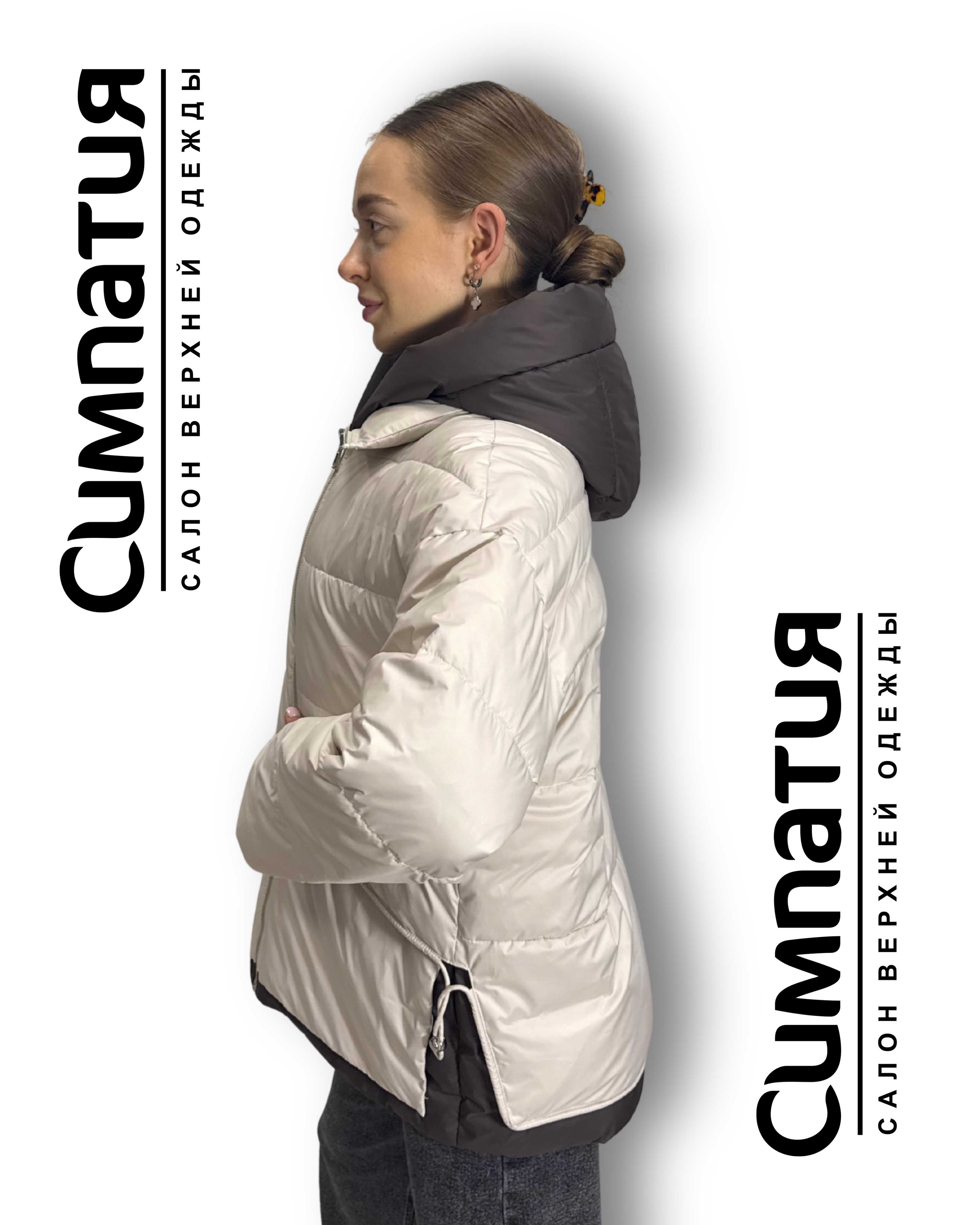 Комбинированная куртка сливочного цвета с кофейным капюшоном