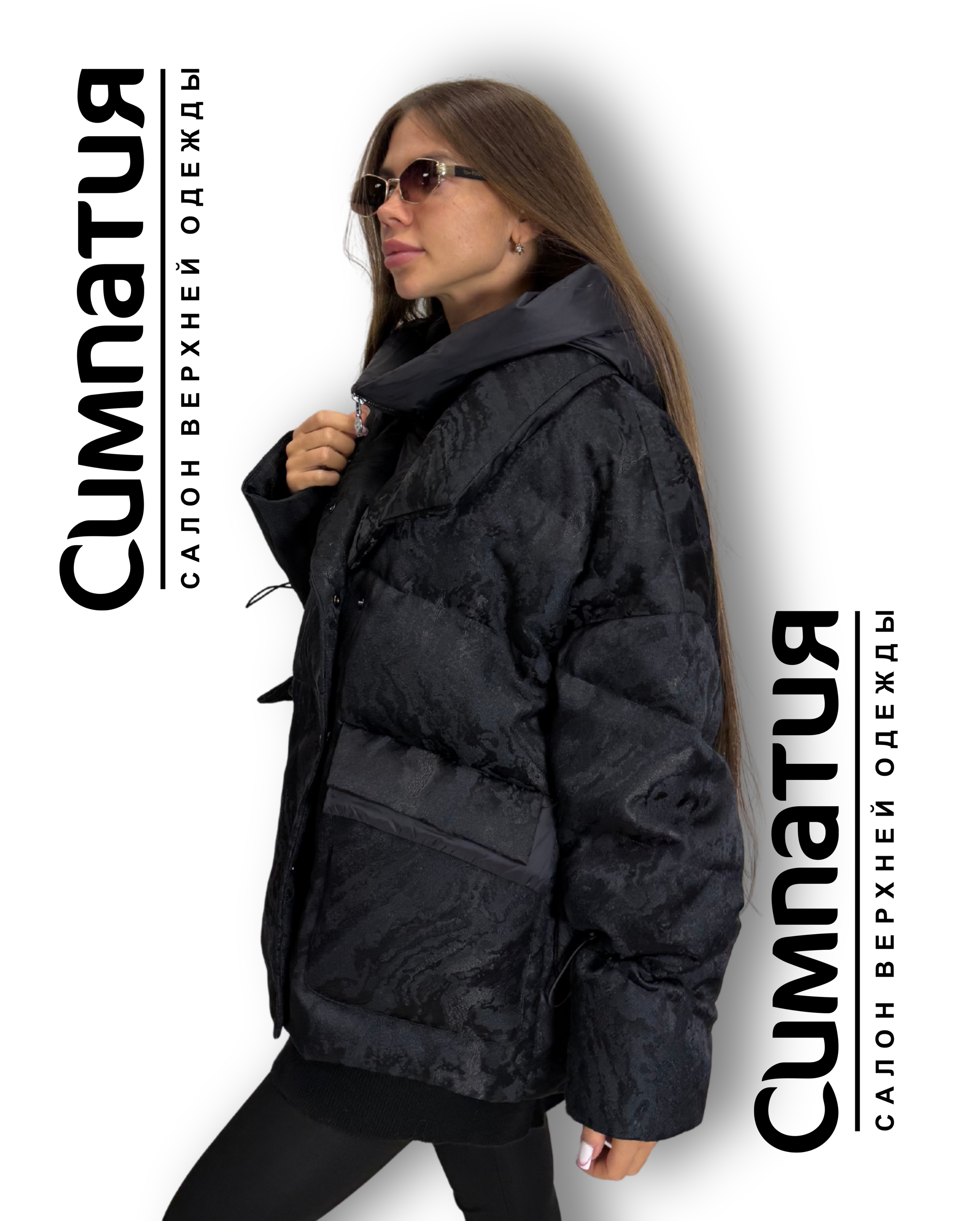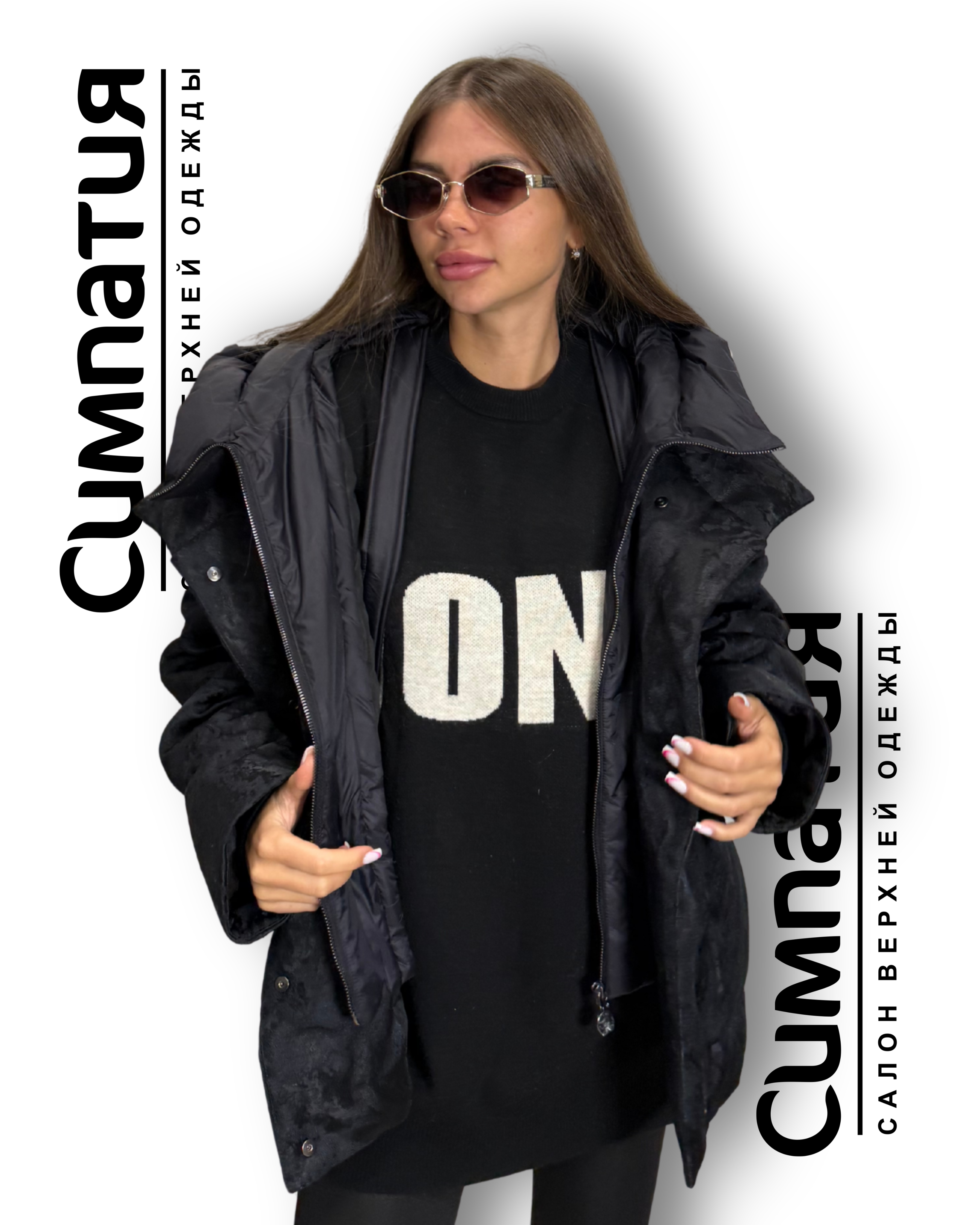 Куртка over size в черном цвете. Воротник стойка у съемной жилетки + английский у основы, есть внутренние подтяжки. Застегивается на молнию и кнопки. Глубокие накладные карманы.