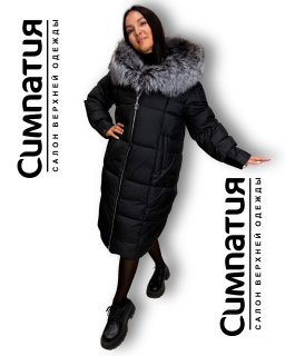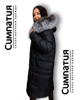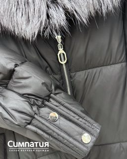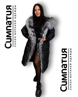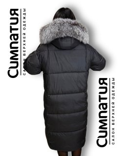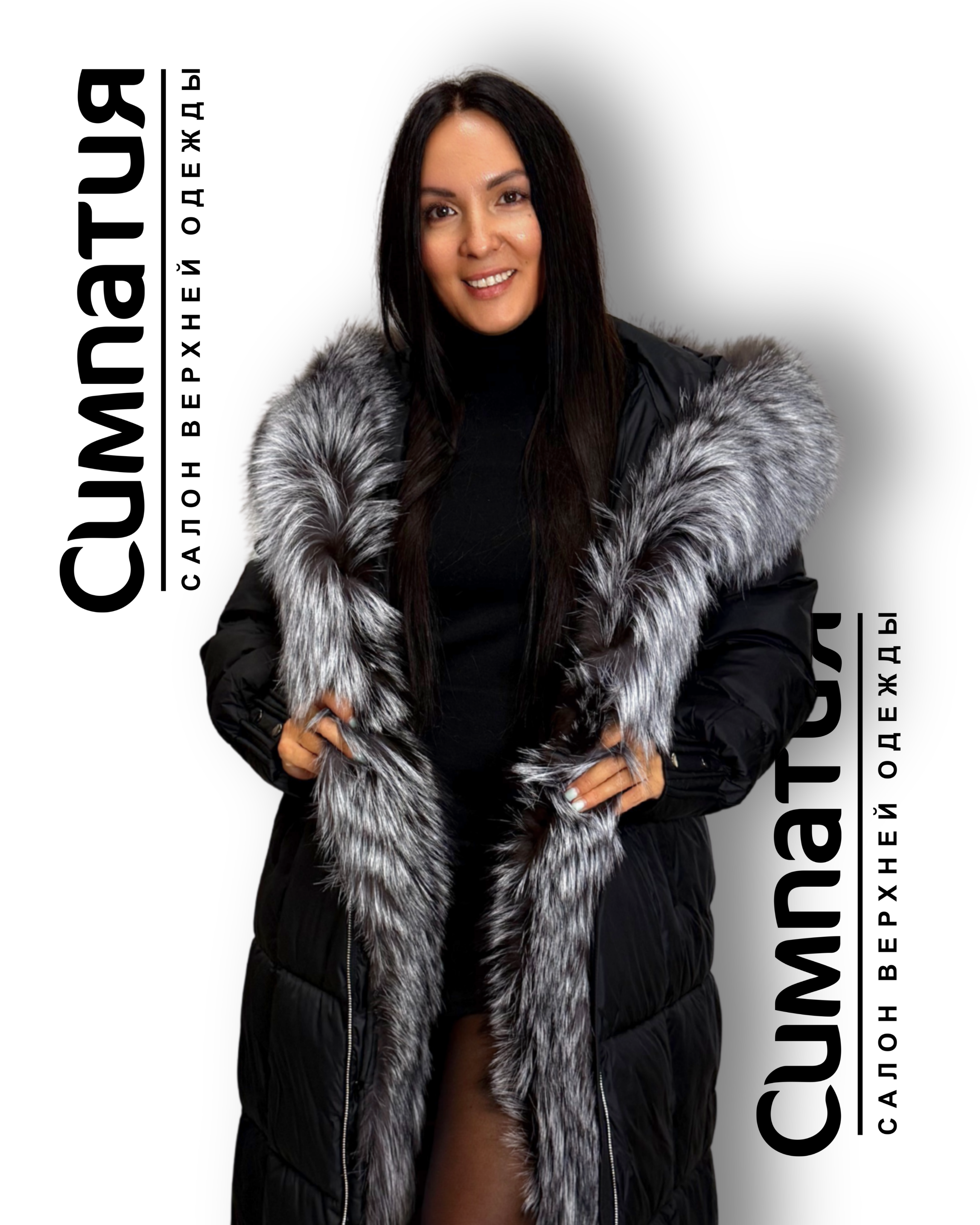 Шикарный пуховик с отделкой из натуральной чернобурой лисы в черном цвете