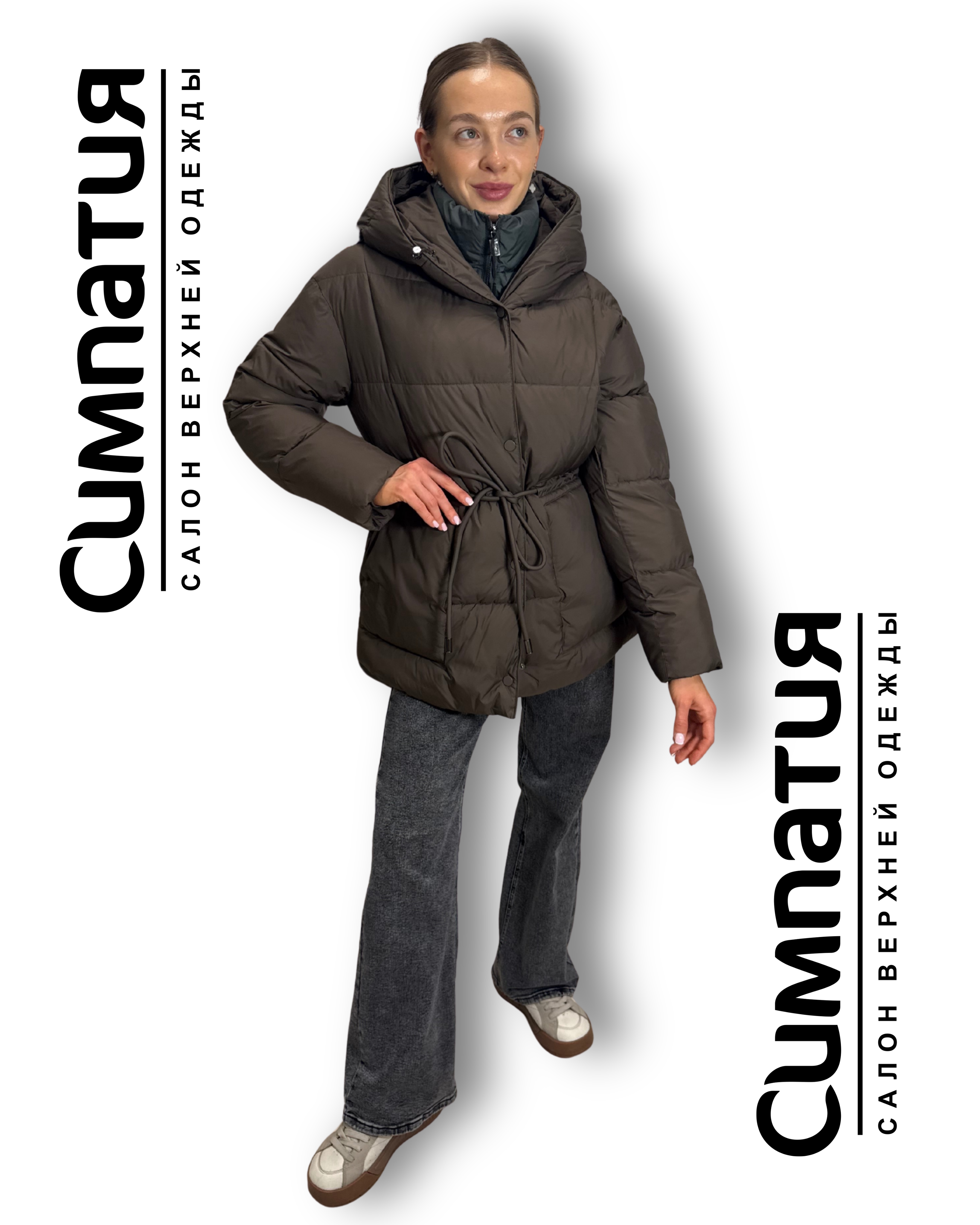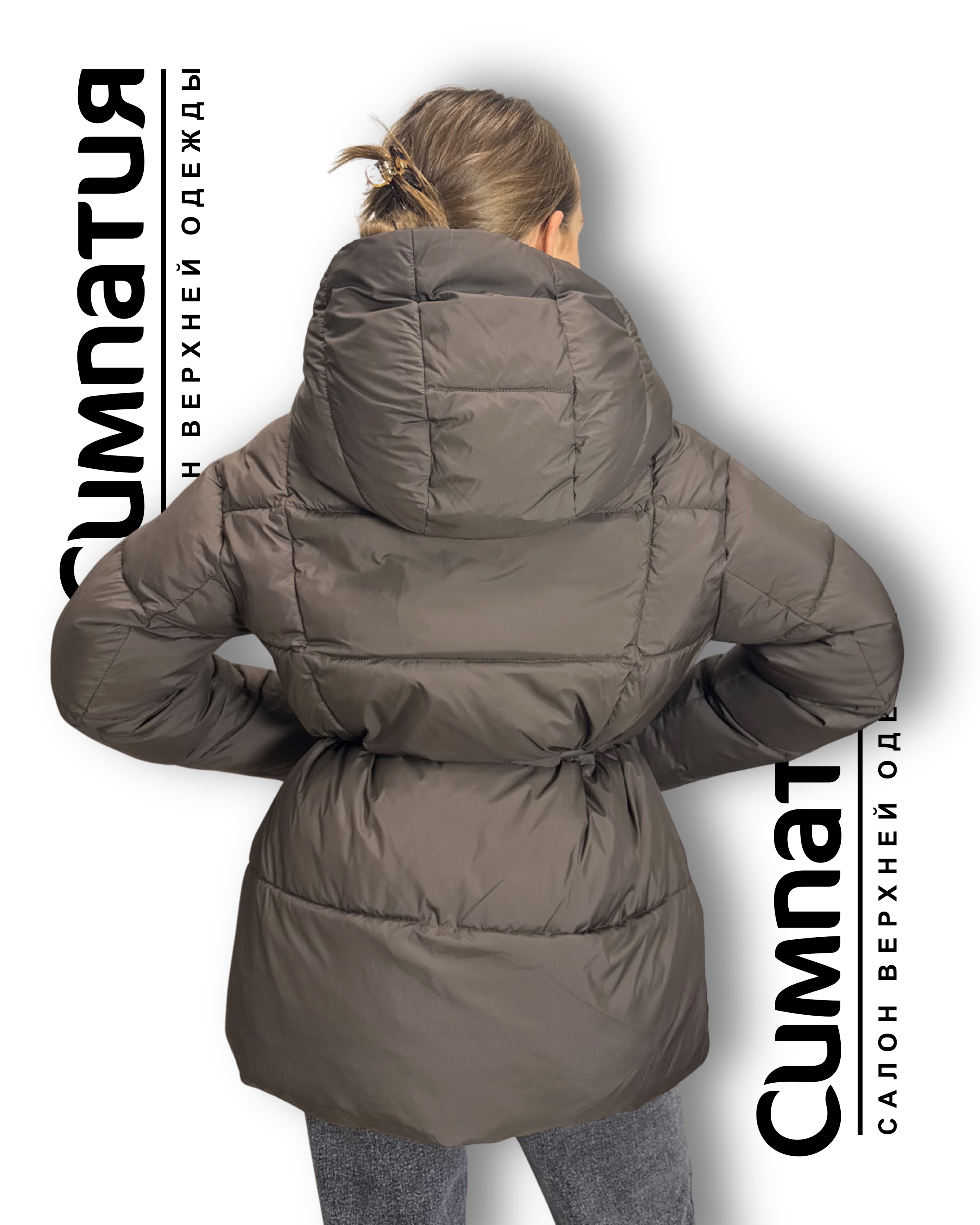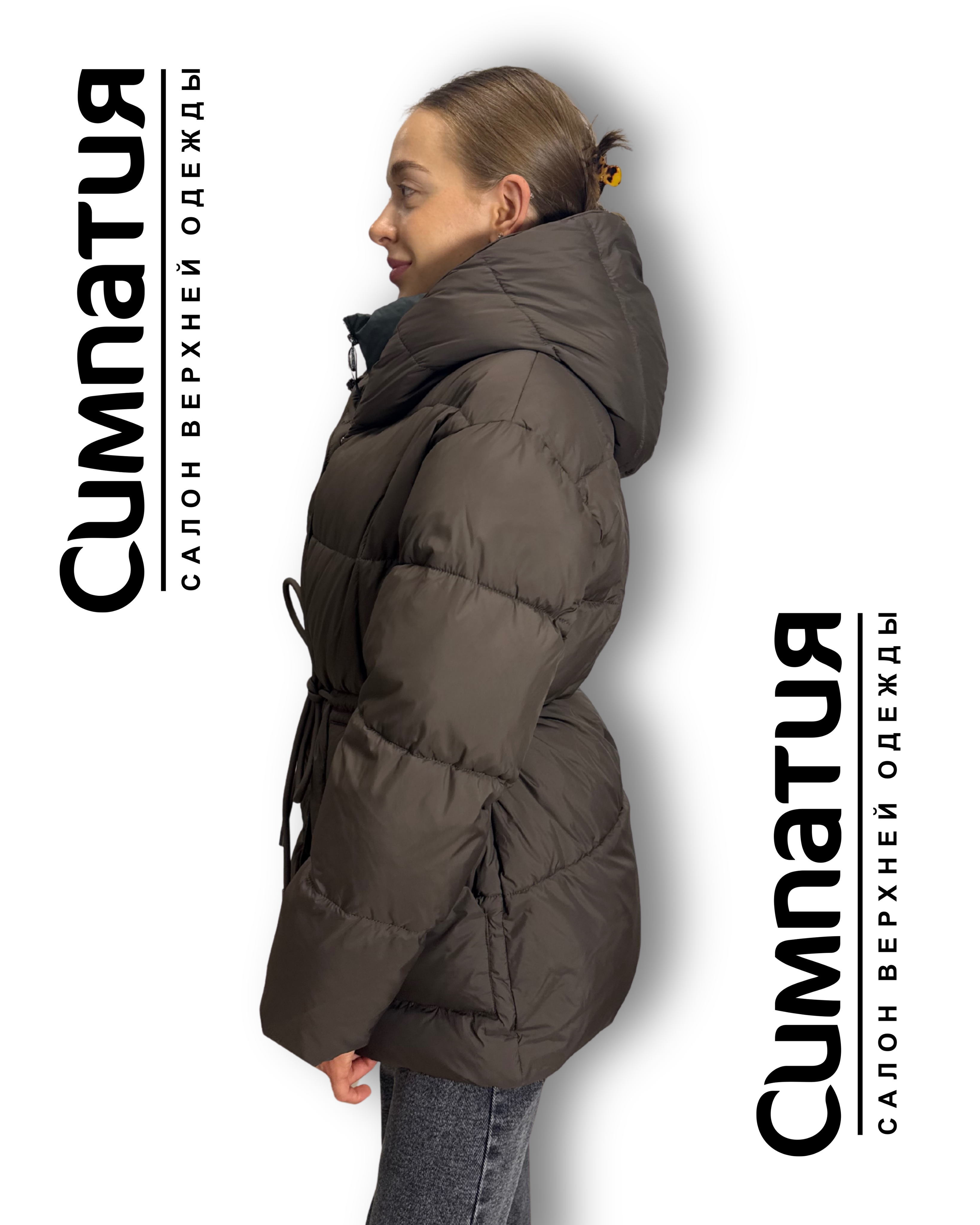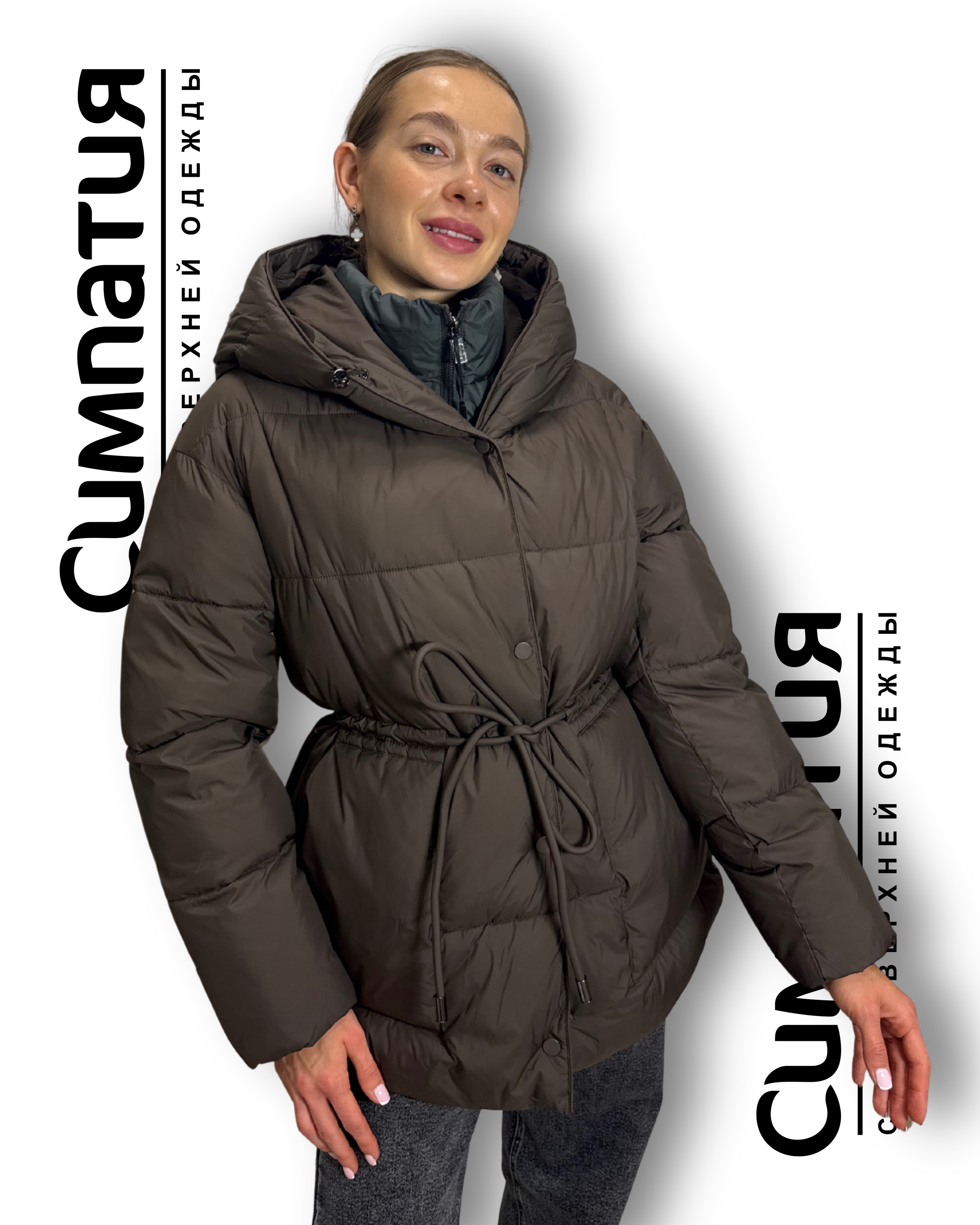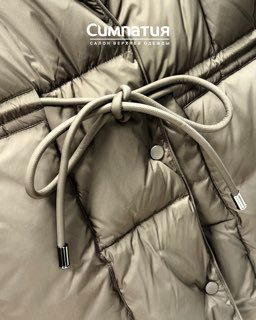 Стильный удлиненный пуховик в изысканном кофейном цвете с графитовым воротником стойка. Глубокие накладные карманы и кулиска на талии. Застегивается на молнию и кнопки.