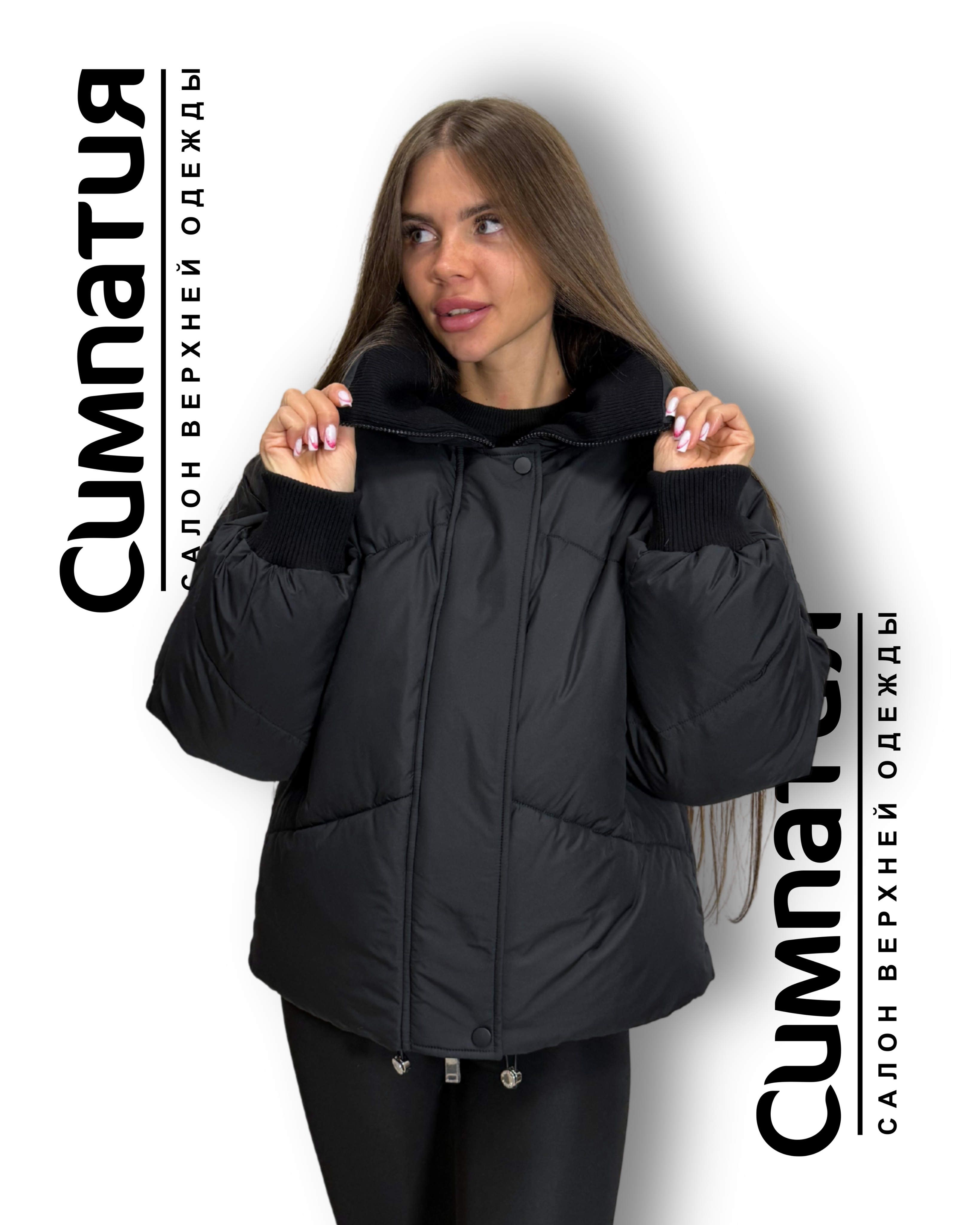 Универсальная куртка до -15 черного цвета с высоким воротником стойка